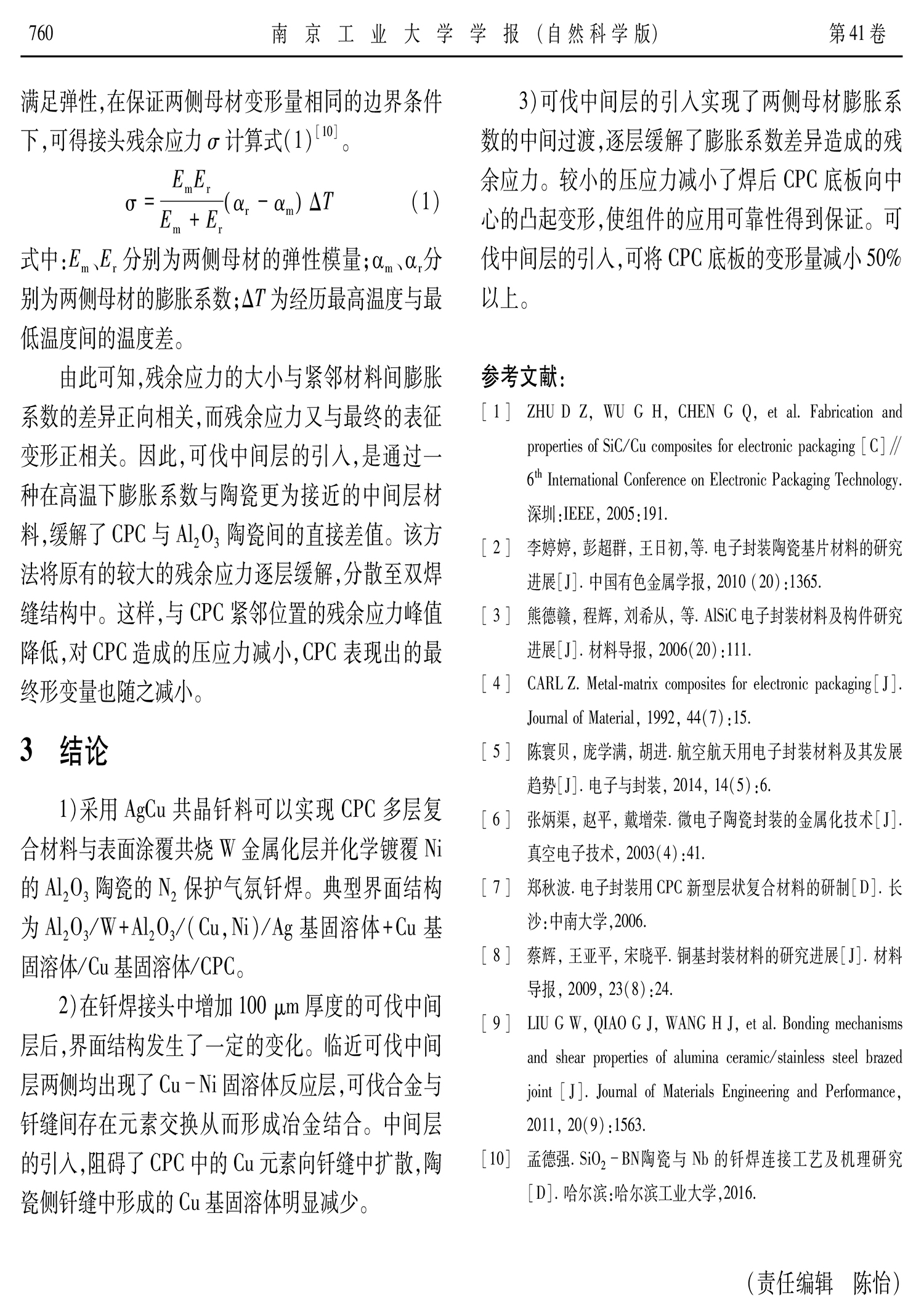 電子封裝用Cu-MoCu-Cu(CPC)材料與Al2O3陶瓷釬焊及變形研究