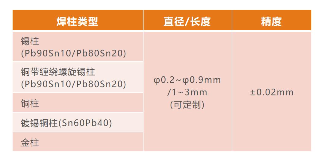 簡(jiǎn)介:柱狀焊料 用途:軍用FPGA的CCGA封裝 特點(diǎn):高I/O,高可靠性 提高封裝體抗熱疲勞性能